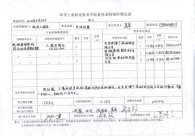 畢節(jié)工業(yè)職業(yè)技術(shù)學(xué)院集體采購(gòu)詢價(jià)情況表公示