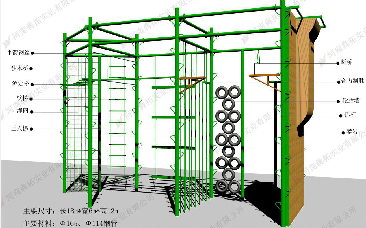 2、項目功能:培養(yǎng)個體責任感、奉獻精神,自我挑戰(zhàn)和突破能力;培養(yǎng)行動前群策能力,以及調(diào)查研究、認真計劃的精神,學習在緊急情況下進行有效溝通,激發(fā)創(chuàng)造力;培養(yǎng)在短時間內(nèi)有計劃解決問題的能力;學習目標的確立、學會為自己負責,實現(xiàn)自我監(jiān)控,增強團隊凝聚力;增強個體的手臂、腰部、腿部力量、身體協(xié)調(diào)能力與平衡力。