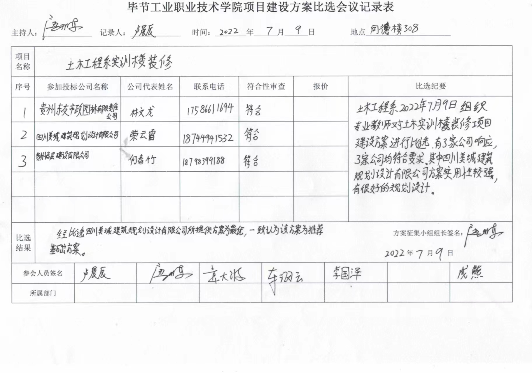 畢節(jié)工業(yè)職業(yè)技術(shù)學(xué)院土木工程系實(shí)訓(xùn)樓裝修項(xiàng)目比選結(jié)果公示