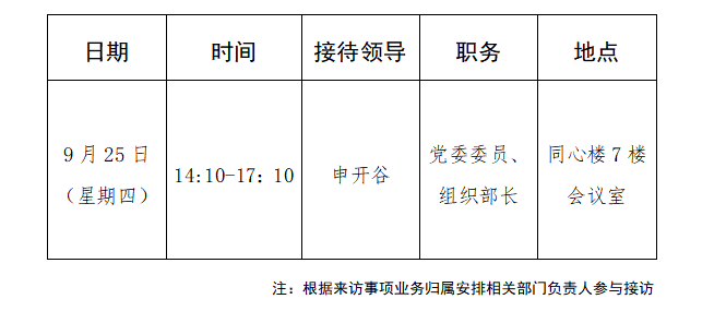 關(guān)于2025年9月領(lǐng)導(dǎo)干部接待日的通知